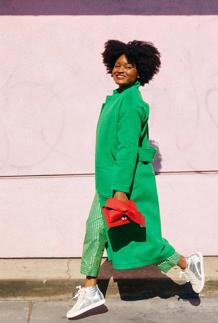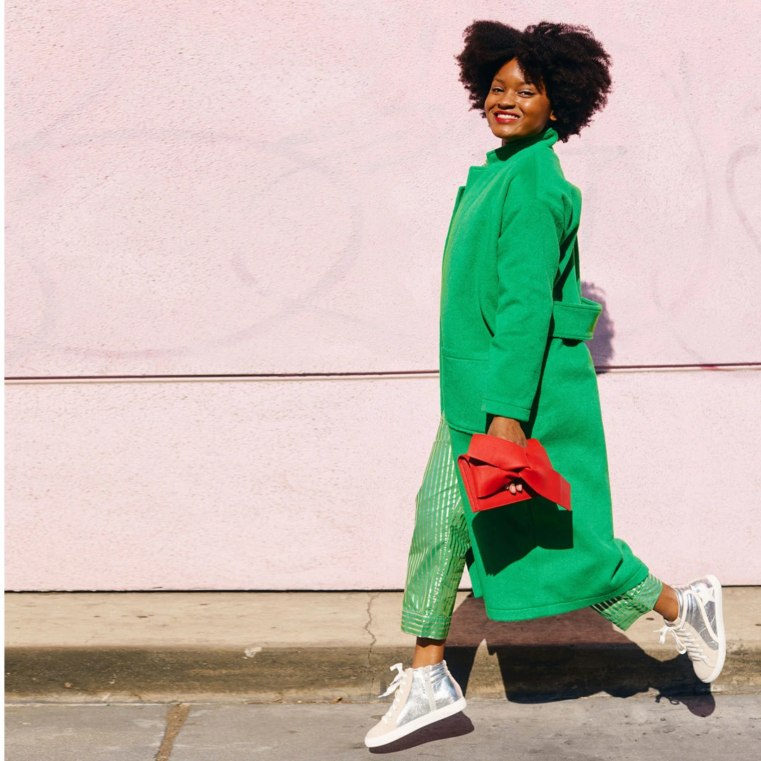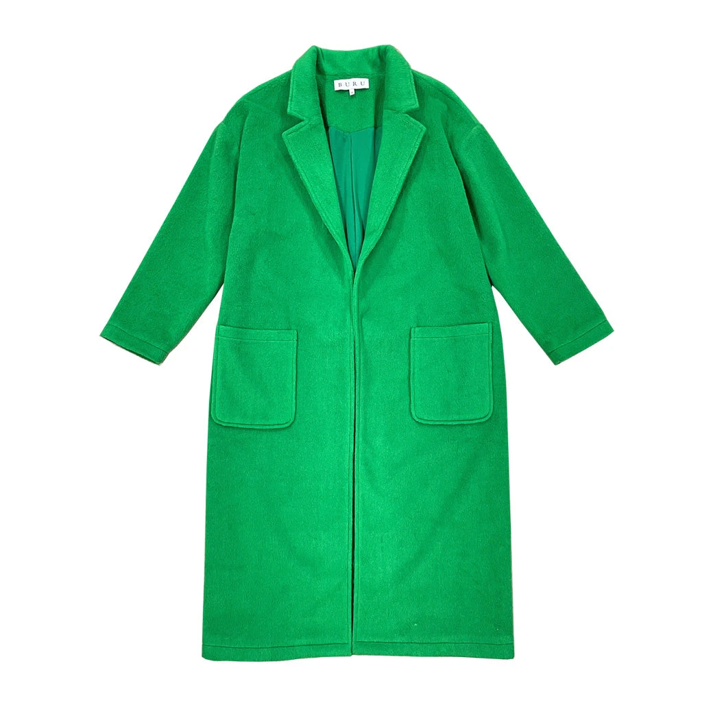 Why wear a black or camel coat when green is on the table? Though she may be made of Faux Mo(hair), we feel strongly that you will not have FOMO when wearing this bold beauty. With an open front and a beautiful back belt detail, this easy throw on and go Car Coat adds a pep to your step. Style her with pieces from our green and silver collection for a fun holiday look or keep it simple with jeans and a classic white button down.