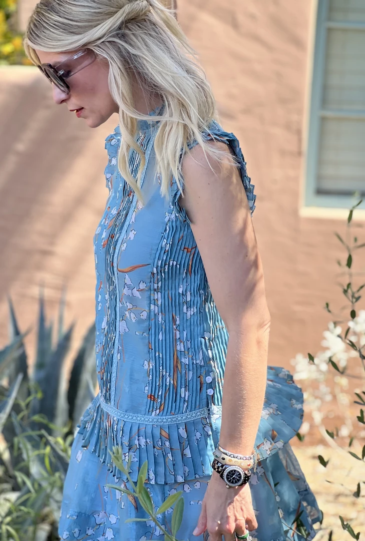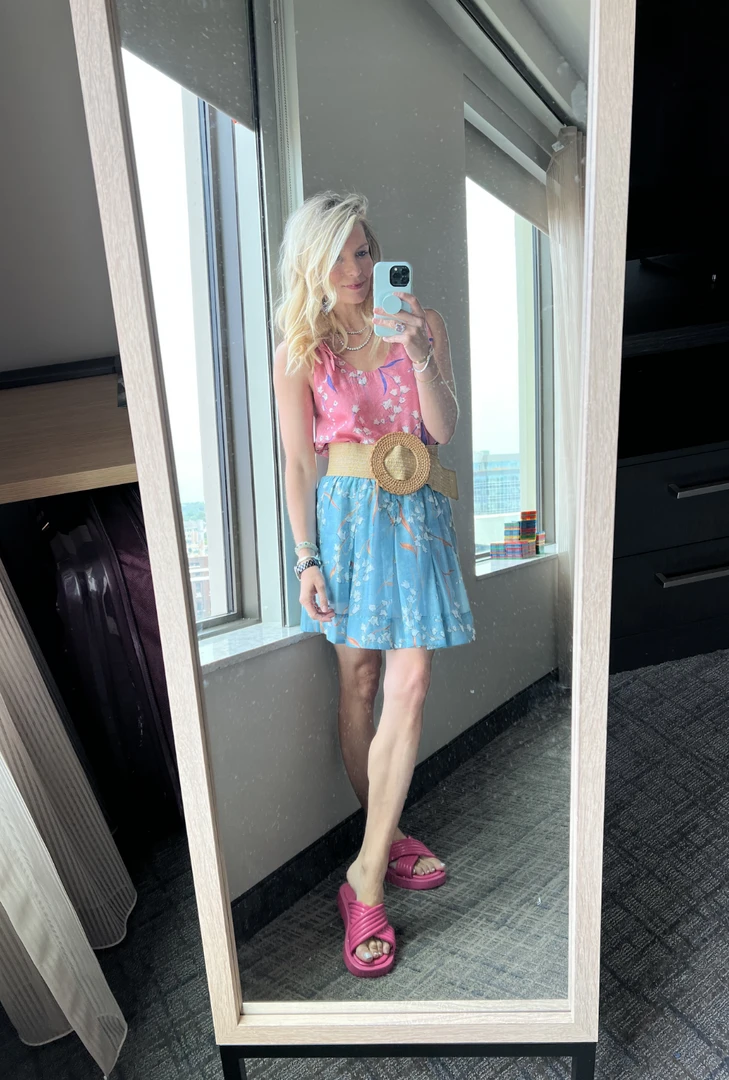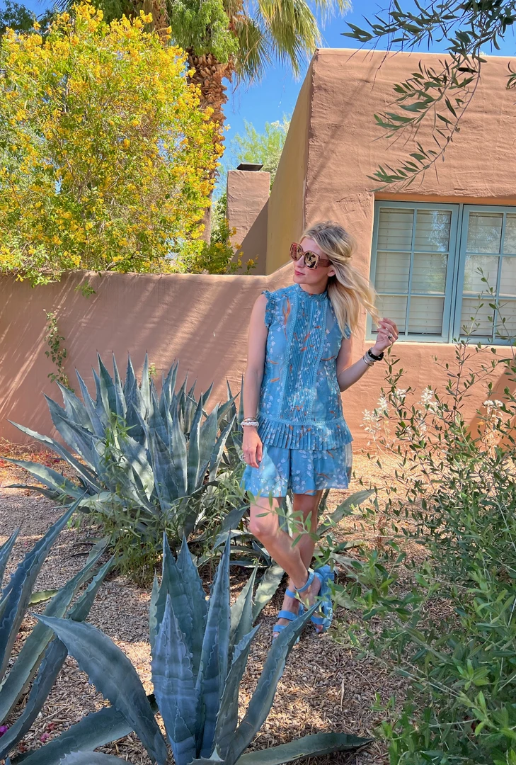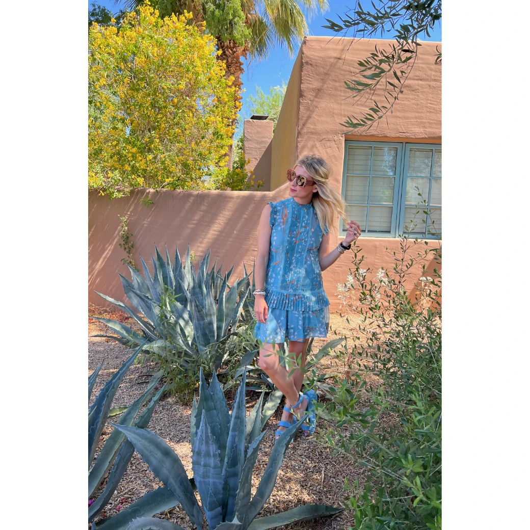 If you’ve tried our smocked mini skirts before, we think you’re going to love our updated version, sans bubble hem, with a few extra inches of length and a nice wide hem. The comfy, smocked elastic waist is ideal for all day wear. And of course, it has pockets! Style this Blue Lily of the Valley Print with its matching Flutter Sleeve Top or mix & match it with the Pink or Ivory Lily prints. We also love her paired with a classic white button down shirt.
