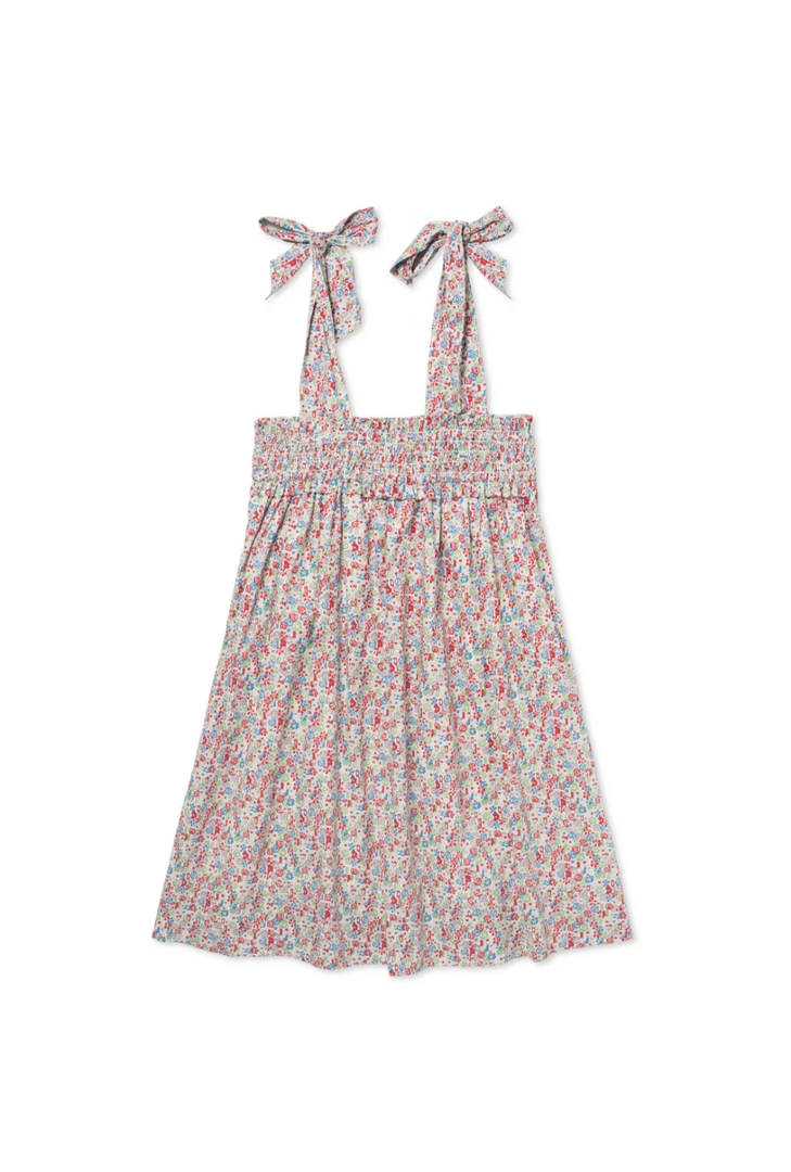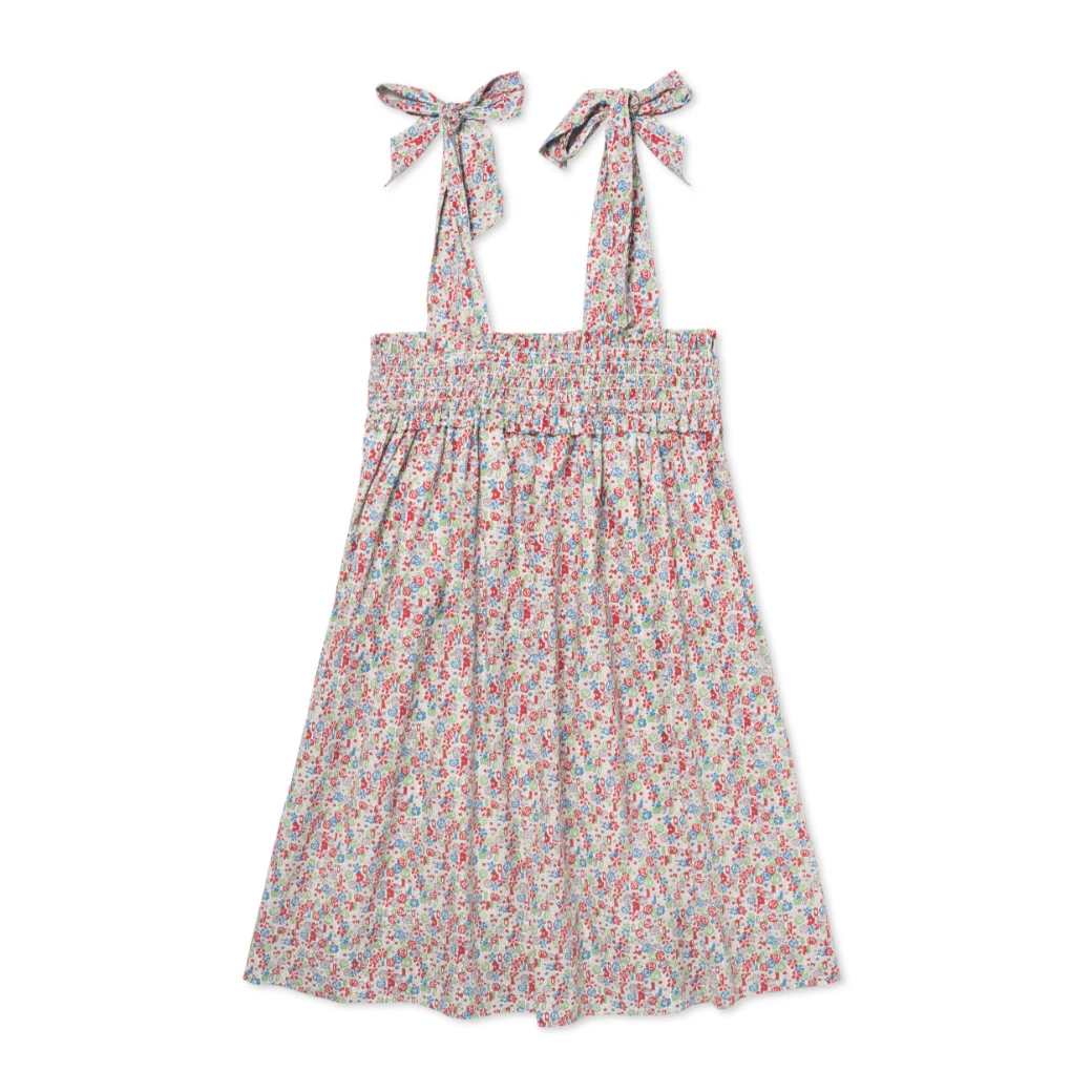 SIZE XS/S band measures 30″ with stretch up to 40/42″ and the waist can accommodate up to 50-52″ (aka bump-friendly). Length from smocking to hem is 28″. Top ties are adjustable and can accommodate different heights allowing length up to 35″/36″.