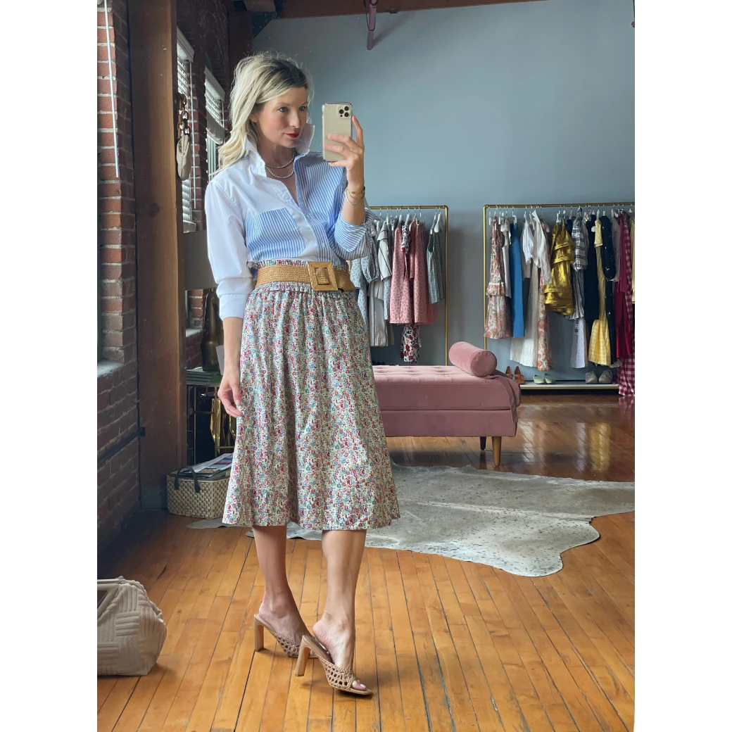 SIZE S/M band measures 31″ with stretch up to 42/43″. Length from top of smocking to hem is 28.5″. Top ties are adjustable and can accommodate different heights allowing length up to 36″/37″