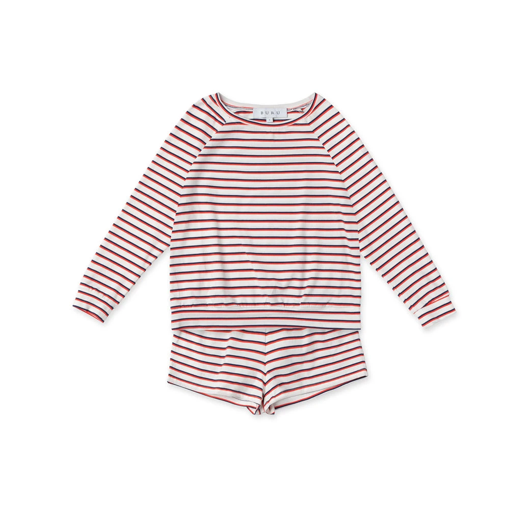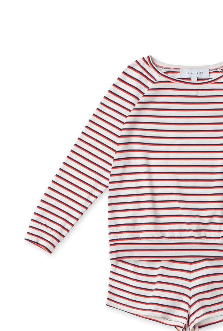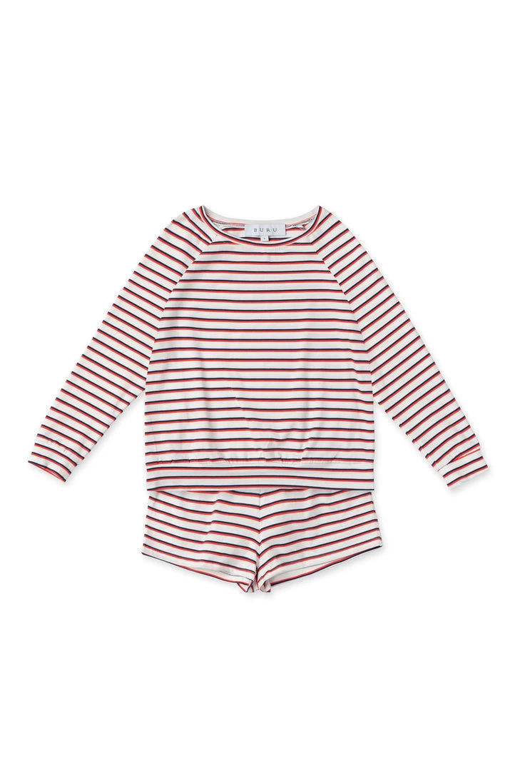 This super soft, cotton jersey knit set is perfect for everyday mom life. The long sleeve top & shorts can be worn together or separately to create a comfortable look for a day full of errands; or ditch the shoes altogether, curl up on the couch and turn on your favorite family movie!