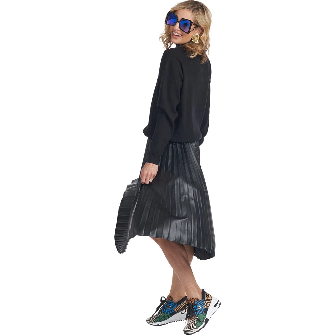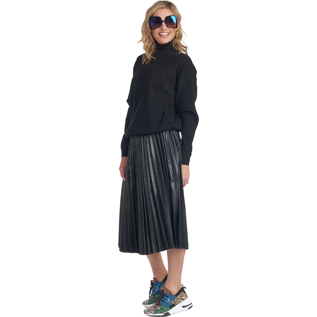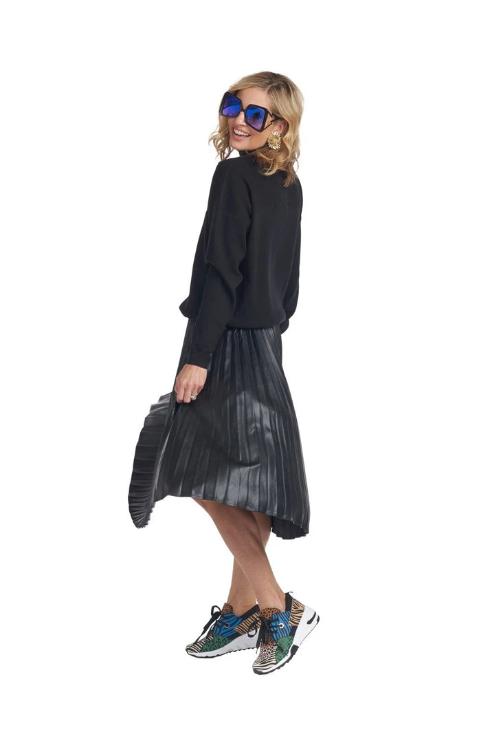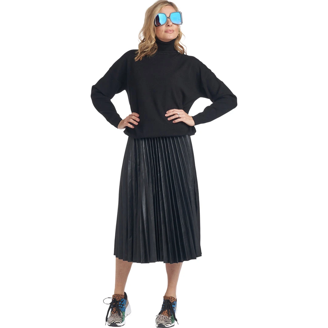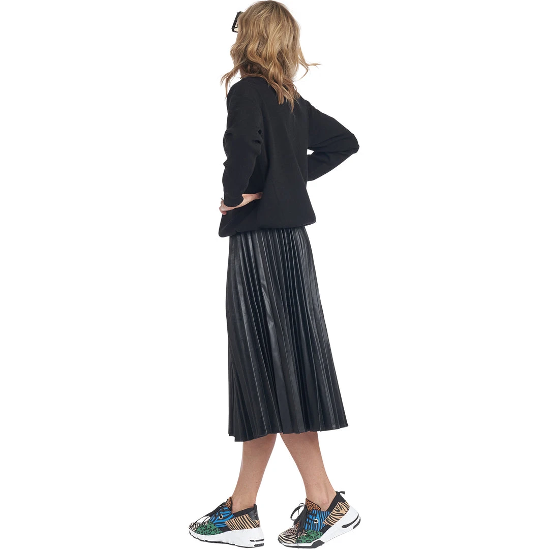 Elevate your daily mom look by adding some (vegan!) leather and pleats. This skirt, featuring a one size fits most drawstring waistband, is as cool as it is comfortable. We love it dressed up with a blouse and heels or dressed down with a cozy sweater and your favorite sneakers.