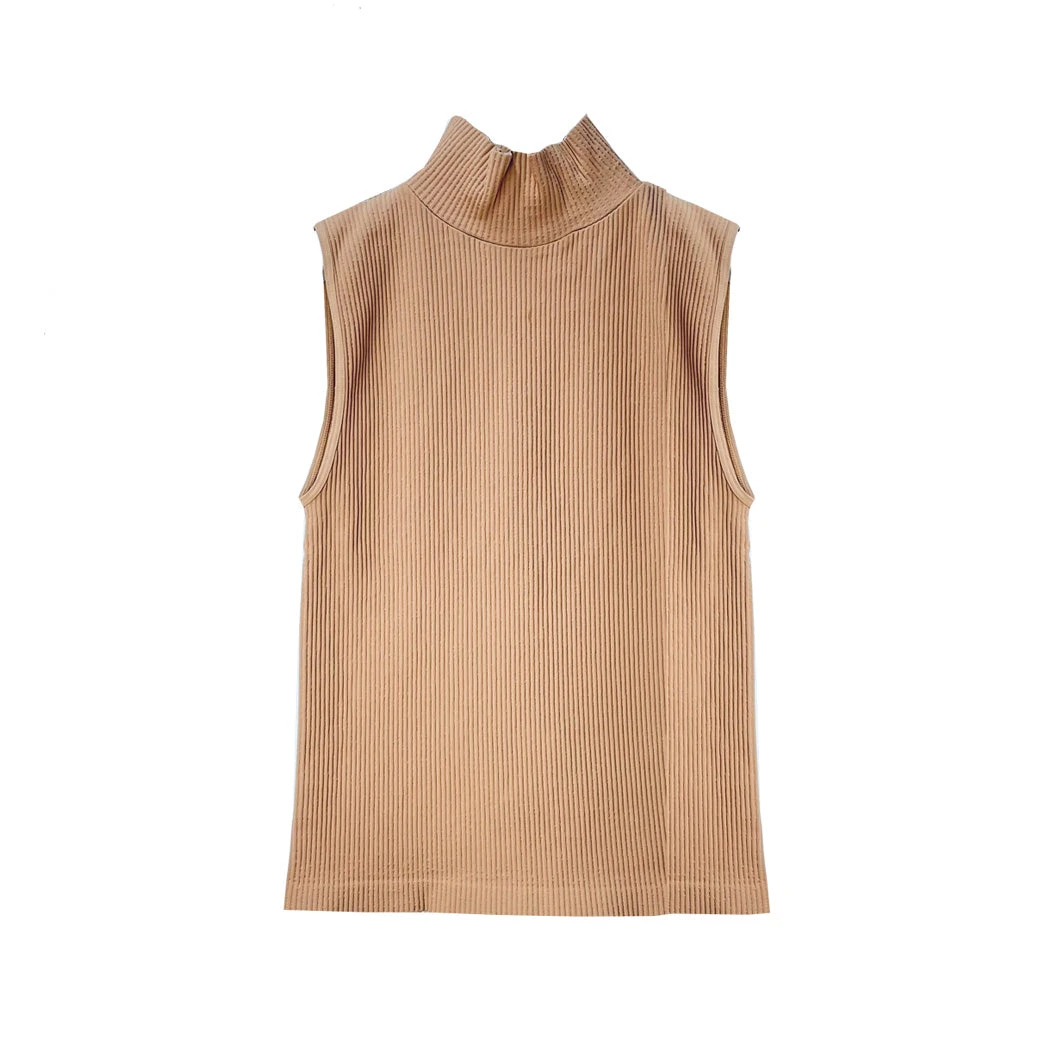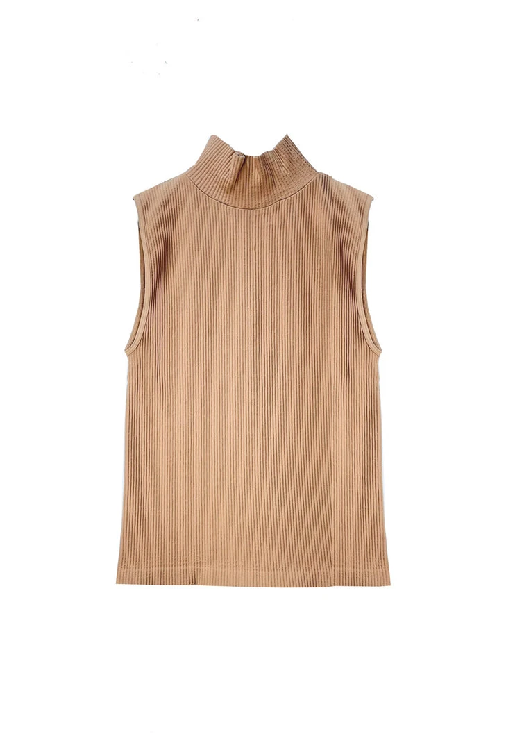 This super soft, sleeveless turtleneck is a perfect layering piece. Add cleavage coverage for a lower cut top or transition a summer look to fall.